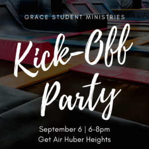 In order to jump back into student ministry, we will be hosting our Grace Student Ministries Kick-Off Party at Get Air Huber Heights on September 6th from 6-8 PM! Both Ablaze and Radiate students are encouraged to come and bring friends with them.